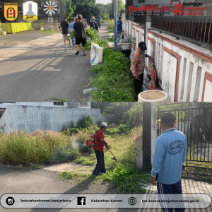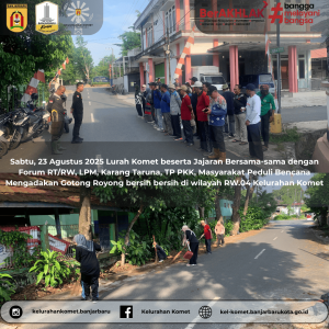 Sabtu, 23 Agustus 2025 Lurah Komet beserta Jajaran Bersama-sama dengan Forum RT/RW, LPM, Karang Taruna, TP PKK, Masyarakat Peduli Bencana Mengadakan Gotong Royong bersih-bersih di Wilayah RW. 04 Kelurahan Komet