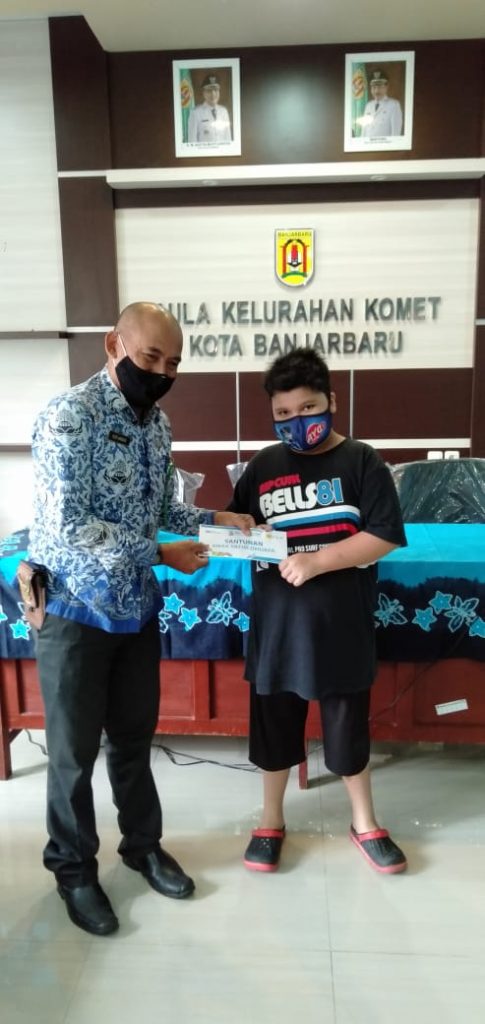 Rabu, 17 Nopember 2021 bertempat di Aula Kantor Kelurahan Komet Lurah Komet Nor Akbar dan Ibu Yurnida Ketua TP. PKK Kel. Komet berserta Kepala Seksi Kesesos Kelurahan Komet Ibu Neta Pahriati,S,Pi, melaksanakan kegiatan penyaluran bantuan dari Yayasan Baitul Maal dlm rangka peringatan Hari Listrik Nasional (HLN) ke 76 Tahun 2021 mengadakan Program “Santunan Anak Yatim Dhuafa ” memberikan bantuan kepada 12 orang anak yatim per kelurahan se kota banjarbaru.semoga dengan bantuan ini bisa membahagiakan serta meringankan beban anak yatim yang ada di Kelurahan Komet harap lurah komet dan lurah komet tidak lupa mengucapkan banyak terimaksih kepada Yaysan Baitul Maal.