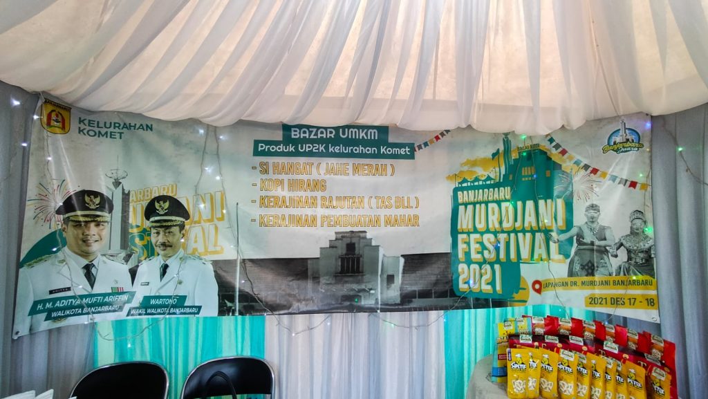 Jumat, 17 Desember 2021 dalam rangka memeriahkan ” BANJARBARU MURDJANI FESTIVAL 2021″ yang berlangsung 17-18 Desember 2021, Kelurahan Komet membuka stand untuk UMKM dan Produk UP2K Kelurahan Komet, yo sanak/Bapak/ibu/adek-adek kunjungi stand Kelurahan Komet nomor 8 ( Depan Gedung DPRD Kota Banjarbaru ) tetap jaga prokes…..#banjarbarujuara ” BANJARBARU MURDJANI FESTIVAL 2021″