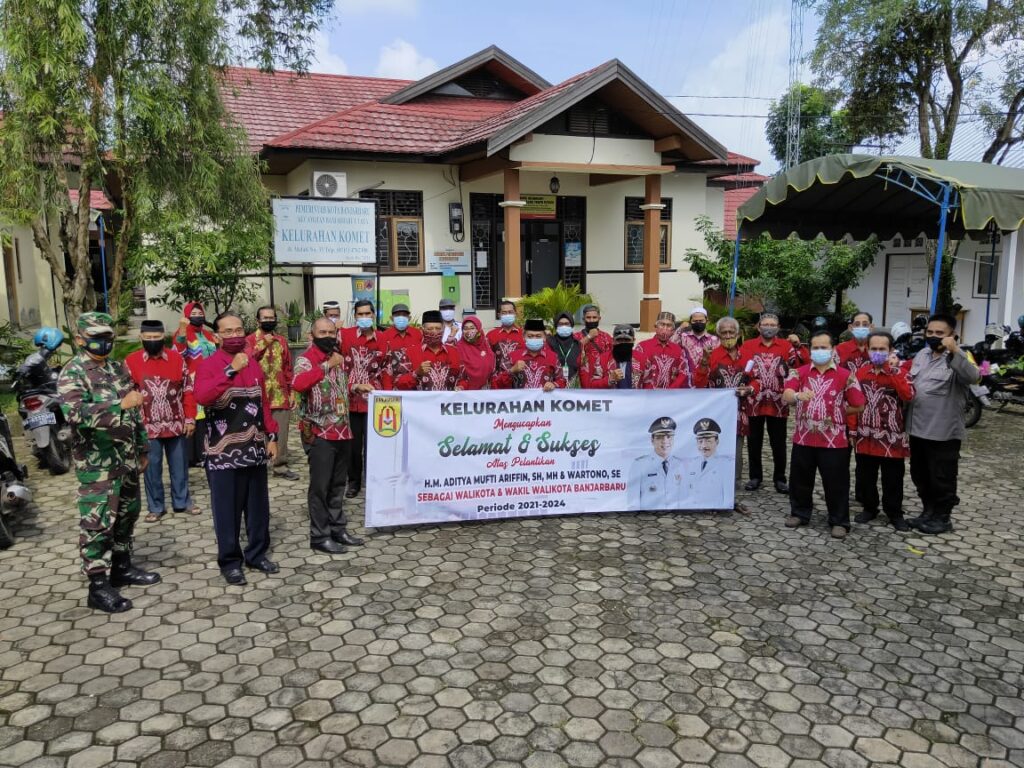 Banjarbaru, jum’at 26 Februari 2021 Acara Pelantikan Walikota dan Wakil Walikota Banjarbaru Periode 2021-2024 H.M. Aditya Mufti Ariffin,SH,MH dan Wartono,SE oleh Pj. Gubernur Kalimantan selatan di Gedung Mahligai Pancasila Kota Banjarmasin secara virtual yang disaksikan oleh seluruh ASN Kelurahan Komet berserta Ketua RT dan RW se Kelurahan Komet,Babinsa dan Bhabinkamtibmas Kelurahan Komet acara berlangsung Hikmat dan berjalan dengan lancar.